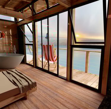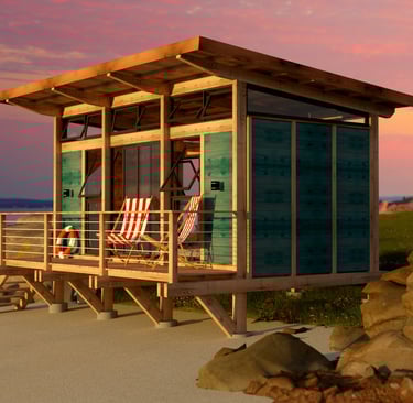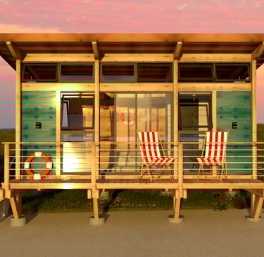 🏖️ A cabana On the Beach foi projetada para oferecer um espaço versátil que abraça a brisa do litoral ou a imensidão de uma paisagem.